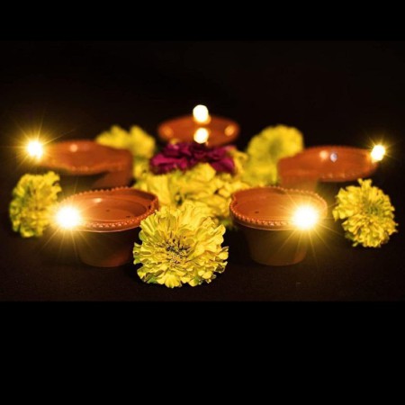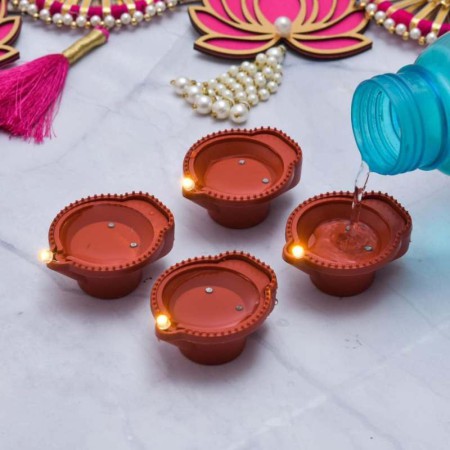 SACRO Water Sensor Diya, Electric LED Diyas for Diwali & Office Décor Pack of 18 I215 Plastic (Pack of 18) Table Diya Set (Height: 2 inch)